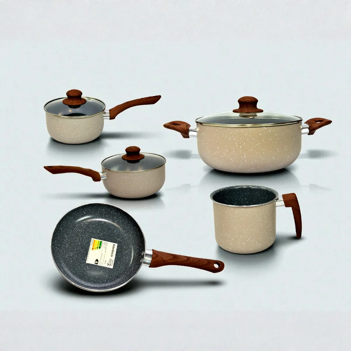 O corpo das panelas é feito de alumínio de alta condução térmica, permitindo que o calor seja distribuído de forma uniforme durante o preparo dos alimentos.