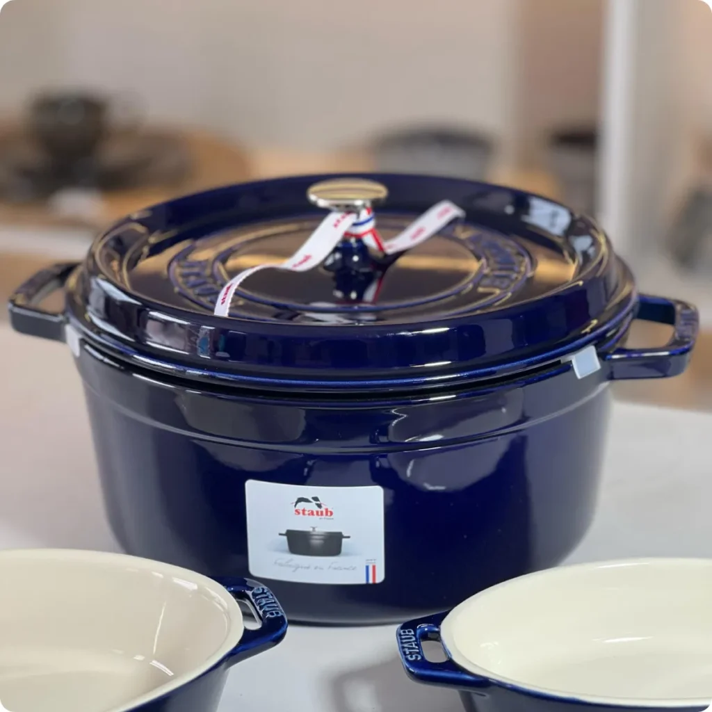 Mais comuns nas marcas premium como Le Creuset.